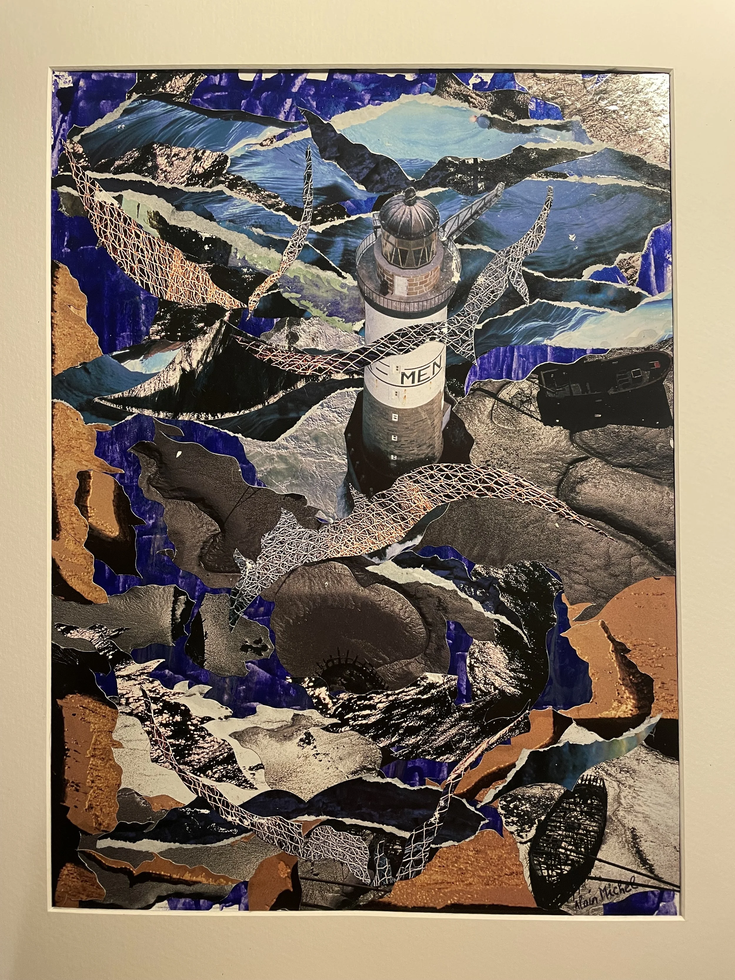 Je vous présente également mon travail sur quatre séries de collages créées dans un cheminement plus long : “Du Visible à l’indicible”“Paris”, “PubCity et “La Mer”